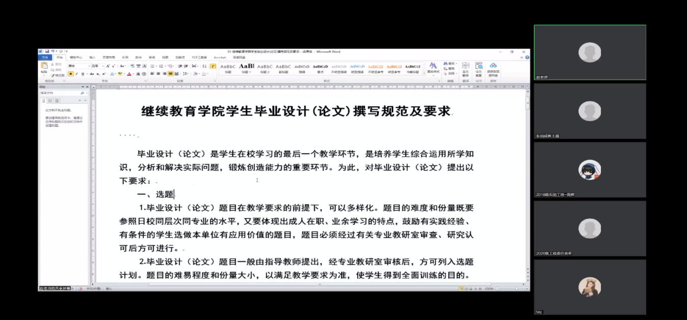 为了确保2018级高起本学生顺利毕业,教学注册办克服疫情影响,在居家办公的情况下,先后组织开展了线上毕业论文(设计)讲座、毕业论文(设计)指导教师分配及明确本届毕业论文(设计)流程等相关工作,进一步严格标准,推进毕业论文(设计)的数字化管理。