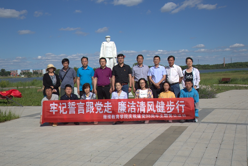 6月20日,副校长于长青带领学院全体党员干部来到大庆廉洁文化公园开展了“牢记誓言跟党走,廉洁清风健步行”主题党日活动。在廉洁文化墙面前,面对鲜红的党旗,全体党员举起右拳,重温入党誓词:“ 我志愿加入中国共产党,拥护党的纲领,遵守党的章程,履行党员义务……”短短十二句入党誓词,字字千钧,进一步激发了大家为实现学校党代会奋斗目标的热情和信心。随后,党员代表、招生考试办公室主任鞠国帅在党旗下宣读了在党的生日来临之际,写给党的一封信。在铁人像前,全体党员面对铁人像驻足并行注目礼,大家共同追忆了铁人的奋斗人生,缅怀铁人的丰功伟绩,感悟铁人的崇高精神。大家纷纷表示,要不忘初心、牢记使命,要在自己平凡工作岗位上将“爱国、创业、求实、奉献”的大庆精神转化为实现学校“强陆-拓海-壮新”发展战略目标的强大动力,用实际行动助推学校高水平百年大学建设。