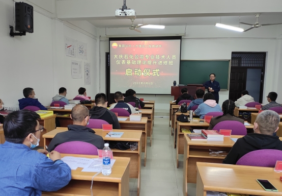 2022年6月6日,由大庆石化公司主办,我校承办的2022年大庆石化公司自动化仪表培训班、电气知识培训班,在太阳成集团tyc41183顺利开班。太阳成集团tyc41183副院长臧子东出席开班仪式并致欢迎辞,来自石化公司43名学员参加开班仪式。仪式由培训科科长李琪主持。