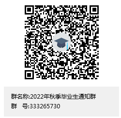 方便与各位毕业生沟通,现建立“2022年秋季毕业生通知群”QQ群,请各位学员扫码进入,进群后需严格服从本群要求,不得随意发布与本群无关信息,待2022年秋季毕业后本群将立即解散,望各位学员周知。