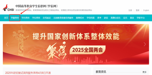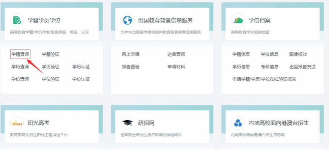 第一步,登录学信网(网址:www.chsi.com.cn),点击“学籍查询”。