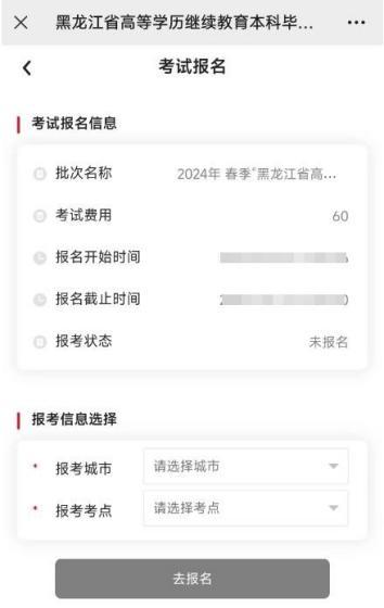 4. 点击报名考试进入报考界面,选择学生报考的考点,如下: