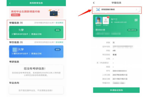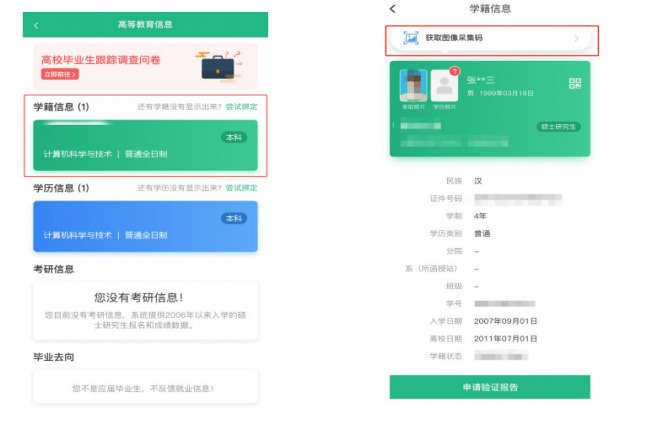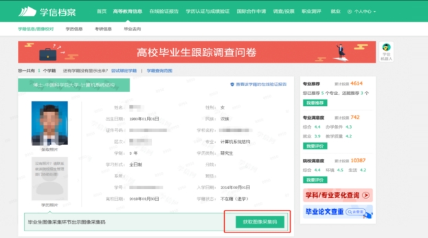 2、请务必提前在学信网获取图像采集码。(下附采集码获取流程)