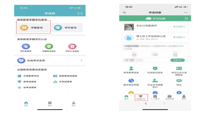 1.登录学信网APP,点击“学籍查询”,查看学籍学历信息