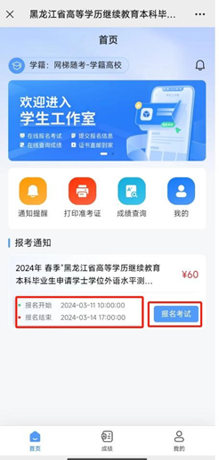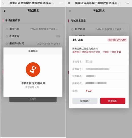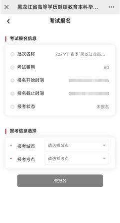 网上报名成功后,在同时段内进行网上缴费,报考费根据黑财税〔20208 号和黑价联〔201391 号规定收取 60 元。考生报考信息填写完毕后须进行网上支付报考费操作(需使用微信或支付宝扫码支付),网上支付成功即完成网上报名。报考者应在规定的期限内进行网报和缴费,逾期不再办理。